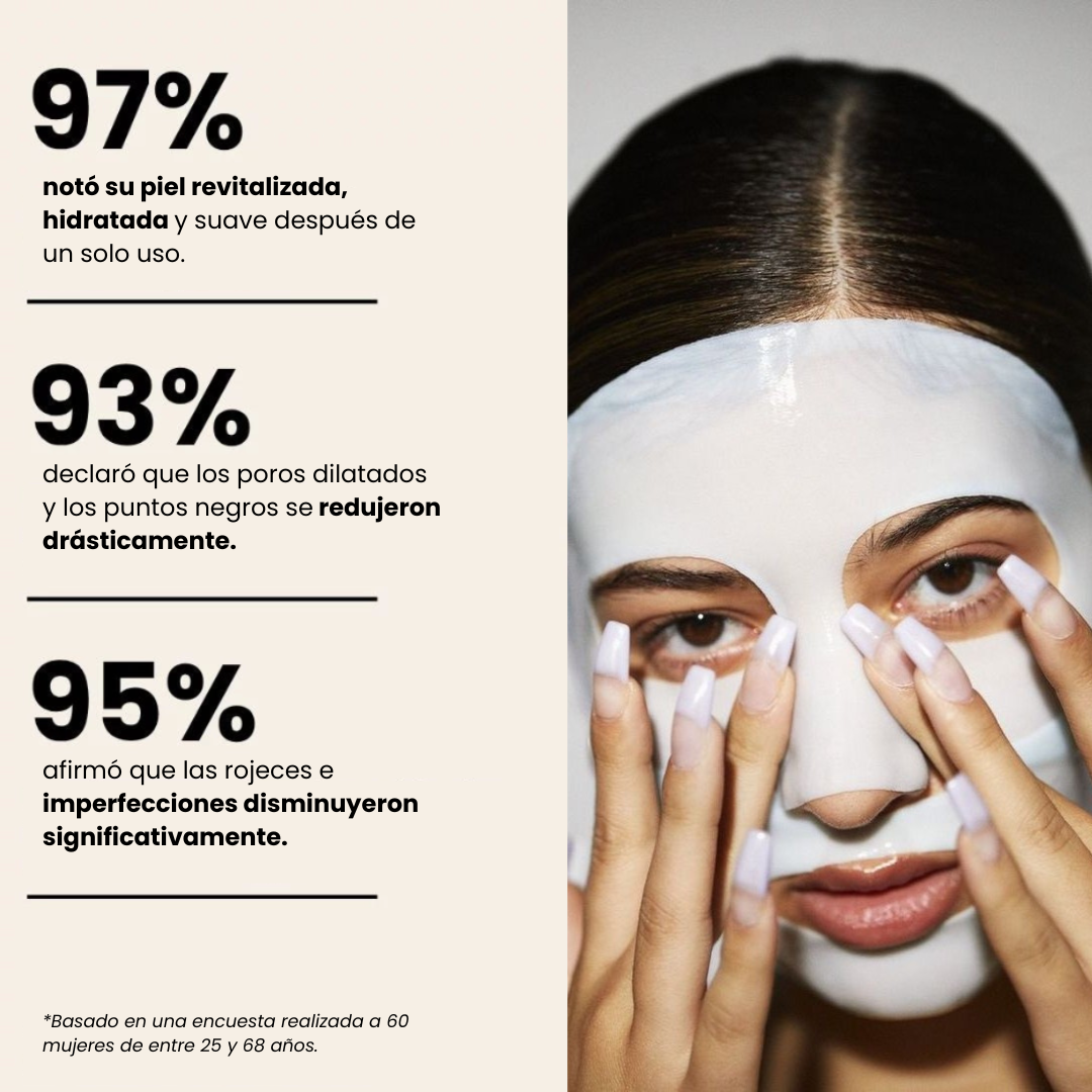 Nuestra mascarilla actúa rápidamente para reducir las líneas finas, suavizar las arrugas y mejorar la elasticidad de la piel, dejando tu rostro más radiante que nunca.